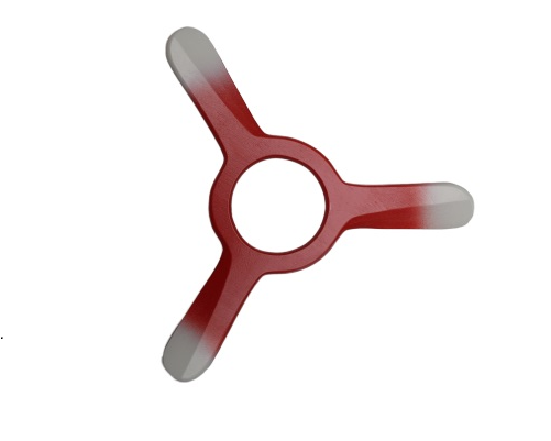 Kształt lekkiego bumerangu trójskrzydłowego połączonego z fantazyjną "dziurką".