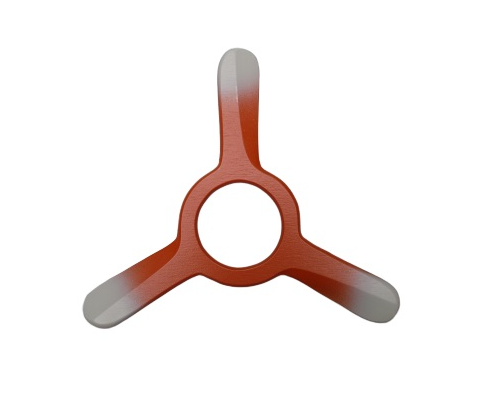 Kształt lekkiego bumerangu trójskrzydłowego połączonego z fantazyjną "dziurką".